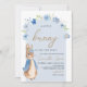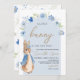 Hop into sweetness with this adorable Boy Little Bunny Baby Shower Invitation. Featuring a charming Peter Rabbit-inspired bunny in a soft blue coat, delicate watercolor florals, and elegant script, this invite is perfect for celebrating a baby boy. The arched frame and classic storybook style bring a timeless, whimsical touch to your shower. BBS1014