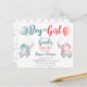 Boy or girl baby elephant gender reveal party budget invitation.