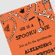 Boy Orange Skull Spooky one Halloween 1st birthday Invitation : This Halloween 1st birthday invitations in orange and black with theses cute skulls (skeleton), ghost, bat, spider cobwebs with the text " It's my booday / boothday on the back, is for baby boy (kids / children). (ex: He is a Spooky one. Join us for the spooktacular Alexander's first birthday XXXXX October XX... )This halloween first birthday invitation is great for spooky birthday. You can personalize this girly halloween birthday party invites with all your informations. Perfect for halloween 1st birthday invites, halloween first birthday invitations, 1st birthday party, halloween first birthday, boy birthday, october birthday, boy 1st birthday... HALLOWEEN THEME ( the spooky one birthday invitations, spooky one birthday )