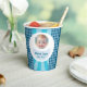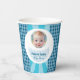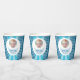 Delightful blue and white baby shower Paper Cups with a balloon, beautifully designed to hold sweet surprises for guests celebrating the new arrival.
