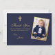 Boy Photo Baptism Faux Gold Foil Navy Blue Script Thank You Card