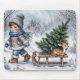 Boy Pulling an Old-fashioned Sled With Tree Mouse Pad