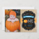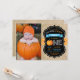 Boy Pumpkin First Birthday Invitation with custom photo, orange and blue, burlap and chalkboard background. For further customization, please click the "Customize it" button and use our design tool to modify this template.