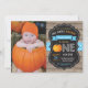 Boy Rustic Pumpkin First Birthday Invitation with blue and rustic wood background with custom photo. For further customization, please click the "Customize it" button and use our design tool to modify this template.
