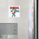Cute back to school stick figure design with a stick figure boy wearing a backpack and colourful red and blue text that reads "School is Cool"!