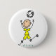 A boy stick figure soccer player with soccer ball on a customizable button, great for anyone who loves soccer and stick figures!