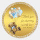 Teddy bear baby shower stickers with adorable teddy bear and pretty baby blue and gold balloons on a beautiful gold background. These teddy bear baby shower stickers are easily customized with the text of your choice.