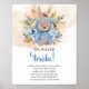 This popular Baby Shower design featured watercolor hand painted cute boy teddy bear in sweatshirt seating in arrangement at tropical dusty blue flowers mixed pampas grass and eucalyptus greenery foliage – all in modern color scheme – dusty blue, green, brown and beige - makes this set suitable for a boy Baby Shower. The unforgettable sentence " We can bearly wait FOR BABY TO ARRIVE! " - which shows the excitement of parents expecting a baby, makes the design very fun and playful. Used modern calligraphy script font, further strengthens the bohemian look and gives more playful look and make invitation so stunning. The whole charming composition is set on a watercolor pastel ivory background and looks so remarkable. Yes, your guests will be really fascinated - send them this really impressive invitation and surely your boy Baby Shower Party will be remembered for a long time. In this exquisite design we have prepared all the necessary elements for your teddy bear theme for boy Baby Shower Party - such as games, welcome posters, table signs and much more, so you can get a complete set of this exceptional bohemian design with a cute boy teddy bear wearing a sweatshirt with light blue flowers mixed tropical flowers and pampas grass and eucalyptus foliage.