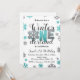 Winter invitation with blue and silver glitter snowflakes for celebrating first birthday your little boy.