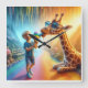 Boy with Giraffe Square Wall Clock