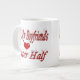 Mug with I'm my boyfriend's better half in 3D red text. Available in several sizes and styles.