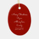 Christmas ornament with photo on one side and text on the other. Perfect for giving to a boyfriend or girlfriend, in traditional red color with white text. Ceramic oval shape with photo template made for a portrait, or vertical, oriented picture which will have a dark red frame. Customize script text on the back as needed. Makes a nice “first Christmas together” gift.