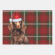 An adorable Boykin Spaniel dog is ready for the holiday season with his Santa hat. This cute Christmas dog is paired with a red holiday plaid on this set of gift wrap for the dog lover.