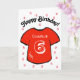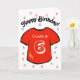 Personalized boy's 6th birthday card with a red football/ soccer shirt design.