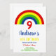 Boys kids 9th birthday party invitation, rainbow blue and primay colours.