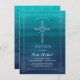 This modern and stylish boy's baptism or christening invitation features a drawn white cross with a matching border. The background is a blurred blend of blues, but can be customized to any colour of your liking. The text can also be customized for your son's special religious occasion.