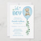 Boys Bear Blue Balloon Eucalyptus Baby Shower Invitation