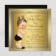 Black and gold baby shower with adorable little prince wearing black diaper and shoes and elegant gold crown on a beautiful diamond and gold glitter background. These elegant black and gold baby shower invitations are easily customized for your event by simply adding your details in the font style and wording of your choice. You can also change the background colour. This is a printed design with no real glitter, gold, diamonds, etc.