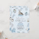 Sweet boys winter onederland themed birthday invitation featuring various arctic animals on a light blue background.