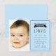 Boys blue simple, baptism invitation postcard