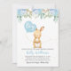 Vous cherchez un baby shower de lapin à l'aquarelle fleurie douce pour bébé? Cette conception comprend un lapin et un ballon d'aquarelle et un arrangement floral d'aquarelle bleue au sommet. L'arrière - plan est blanc avec une texture de grunge en faux or sur les côtés de l'invitation. L'invitation du baby shower lapin de ce garçon est prête à être personnalisée. Un design similaire est également disponible pour une fille au magasin.