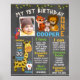 Looking for a little boy's first birthday milestone poster? This chalkboard safari themed birthday milestone poster may be right for you. It features five safari animals, some foliage and an area for your little boy's photo. A sweet addition to a safari themed first birthday party and a lovely keepsake.