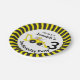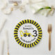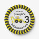 Bold construction building themed birthday personalized disposable paper plates. Digger and chevron design. Personalize with your own birthday boys name and age. Currently reads Dig in it's Joseph's 3rd Birthday Party. Ideal for kids construction birthday party's to encourage the children to eat. Original art and design by Sarah Trett.