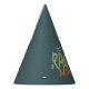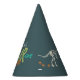 This cool and modern boys birthday party hat design features a t-Rex dinosaur skeleton illustration. The hat can be personalized with your kids name - the perfect dinosaur fossil dig themed addition to your little one’s party.