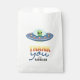 This Out of This World birthday Favor bag features a neon stars, planets, and a colorful UFO, with retro lettering for the words ‘thank you.’ Personalize with your child’s name for a fun space themed kids birthday party favor. Perfect for a 6th, 7th, 8th or 9th birthday, alien party, outer space birthday, or galaxy celebration.