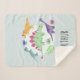 This cute and modern blue kids sherpa blanket features pastel blue dinosaur cartoons, with a t-rex, stegosaurus, rainbows and jurassic jungle plants, and can be personalized with your boys name. The perfect dino themed addition to your kids room or baby nursery.