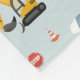 This cute and modern kids fleece blanket features a blue construction pattern, with a yellow digger, cement mixer, stop sign, crane and traffic lights. The cozy blanket can be personalized with your boys name and monogram. The perfect builder themed gift for any construction lover!