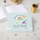 This cute and whimsical personalized boys baby shower guest book features dinosaur cartoons, with a t-rex, stegosaurus and jurassic jungle plants, and can be personalized with the parent's names and the date of your party. The perfect blue dinosaur themed keepsake from your co-ed couples baby shower.