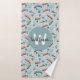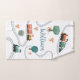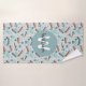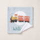This cute blue custom kids towel set design features a blue train transport pattern, with greenery and tracks. There is also space for you to add your boys name and monogram in a beautiful font. The perfect train themed gift for any travel lover.