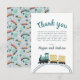 This cute and modern baby shower thank you card design features a colourful train illustration, and can be personalized with the parents'/mom’s name(s) and your own message, with a matching train travel pattern of the back. The perfect addition to your boys baby shower.