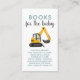 This cute and modern baby shower ‘books for baby’ enclosure card design features a construction digger, with a building illustration on the back. There is space for you to ask guests to bring a book to add to the new baby’s library, use the poem provided or create your own message!