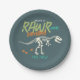 This cute and modern boys birthday paper plate design features a t-Rex dinosaur skeleton design. The plates can be personalized with your kids name - the perfect dinosaur fossil dig themed tableware!