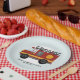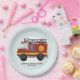 This cute and modern kids birthday paper plate design features a fireman and fire engine truck cartoon, and can be personalized with your boys name. The perfect blue firefighter-themed addition to your toddler's birthday.