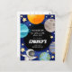 Pour le garçon qui a 1 ans. Invitation à la fête du premier anniversaire sur le thème de l'espace qui peut être personnalisée sur le devant avec l'inclusion de votre texte. Au fond, vous pouvez inclure votre propre message. Une invitation à la fête du 1er anniversaire pour le petit enfant d'un an.