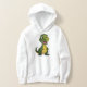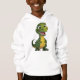 Boy's hoodie with a cheerful cartoon dinosaur standing upright, displaying a wide, friendly grin with large eyes that add to its playful look. Its green body and yellow belly contrast softly, while small spikes line its back.