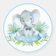 Boys elephant baby shower stickers with adorable baby boy elephant wearing a cute bow tie on a palm leaf background. These sweet baby boy elephant stickers are easily customized with the text of your choice.