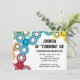 Invitations for a fidget spinner theme birthday party. All spinners in the front can be moved around however you wish. The text can be moved as well. Click on the Customize button to go into edit mode, then move the elements around accordingly.