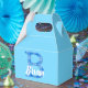 Blue plaid pattern print. Decorative favour boxes. Edit name to customize. Party decor idea.