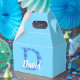 Blue plaid pattern print. Decorative favour boxes. Edit name to customize. Party decor idea.