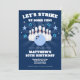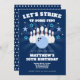 Boy's Navy Blue Bowling Birthday Party Invitation