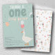 Boy's One Silly Goose 1st Birthday Party Blue Invitation