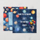 Get ready to launch into fun with this cosmic space-themed birthday party thank you card! Featuring a deep galaxy background filled with colourful planets, glowing stars, and a cheerful astronaut holding balloon-like planets, this design sets the perfect tone for a stellar celebration. Bold white and blue typography announces the birthday child's “trip around the sun,” making it ideal for a 10th birthday—or easily customizable for any age. Great for budding astronauts or space lovers, this invitation adds a whimsical, adventurous vibe to your party plans. Easily personalize with your event details and let the countdown to fun begin!