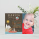 Invitations d'anniversaire de pêche avec de mignons animaux de bois pêchant dans un bateau sur un arrière - plan de lac de montagne. Ces nombreuses invitations de pêche sont facilement customisées pour votre événement en ajoutant simplement votre photo et les détails.