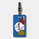Perfect luggage tag for your little slugger. This baseball-themed bag tag has a baseball, baseball glove, baseball bat and baseball hat on it. The boy's name is written on the baseball. A bright blue background makes it easy to find.