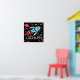 Cartoon graphic rocket kids space poster. Great for a future space explorer's space themed room. Personalise this item with your child's name (up to 7 letters). This example reads: Lochlan. Uniquely designed by Sarah Trett.