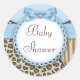 Elegant brown and blue safari baby shower stickers. This adorable brown and blue safari jungle baby boy shower sticker is easily customized for your event.